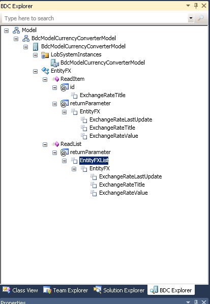 14- After doing all of this, go to BdcModelCurrencyConverterModel double click and be sure you can select the "BDC Explorer". Rename the EntityFX fields as below.